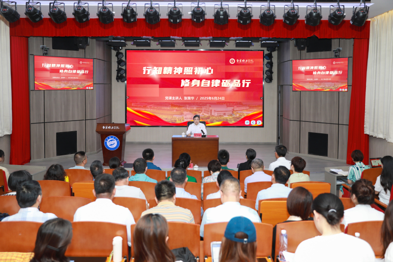 为大力弘扬教育家精神,深化师生以行知精神改进作风建设、涵养清正风气,6月24日,校党委书记张策华教授以“行知精神照初心 修身自律砺品行”为主题,为广大师生党员带来了一场发人深省的专题党课。校党委副书记易永建,各级党组织及相关职能部门负责同志代表、学生党员和发展对象代表共同参与聆听,在浓厚的学习氛围中,汲取精神养分。